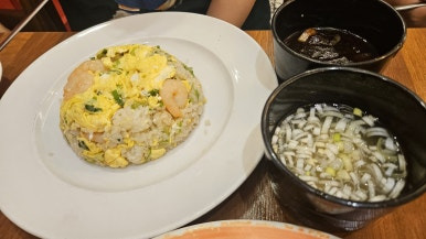 우리는 쟁반짜장, 새우볶음밥, 마파두부, 탕수육을 주문했는데요: