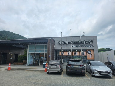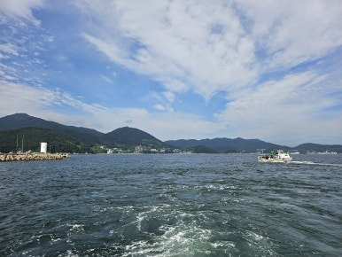 이수도에 가기 위해서는 거제 시방항 여객선 터미널에서 배를 타야 합니다. 푸른 바다를 가로지르며 배에 몸을 싣는 순간부터, 도심의 복잡함은 저 멀리 사라지고 평화로운 섬 여행의 설렘이 가득 차올랐습니다. 짧은 뱃길이었지만, 그 시간조차 여행의 한 부분처럼 느껴졌죠.