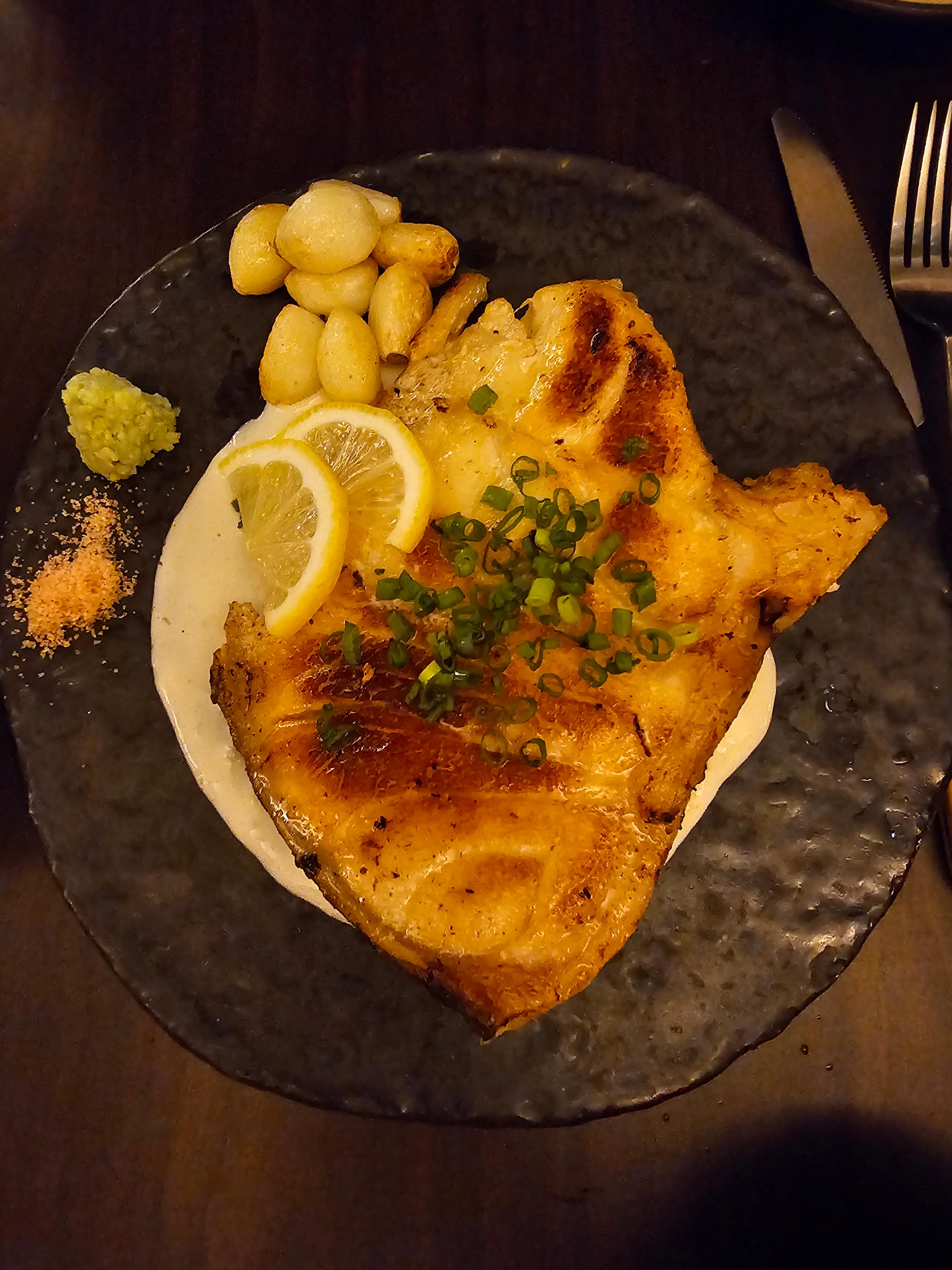 메로 스테이크는 두툼하면서도 촉촉했고, 겉은 노릇하게 구워져서 풍미가 가득했습니다. 곁들여 나온 소스와 함께 먹으니 더욱 부드럽고 고소한 맛이 일품이었어요.