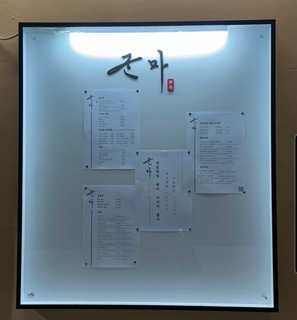 오랜만에 지인들과의 모임이 있어 대구 수성구 신천시장 인근 빌리브 헤리티지 아파트 앞에 위치한 이자카야 '군마' 본점을 다녀왔습니다. 골목길 사이에 위치한 곳이라 살짝 숨은 맛집 느낌이 나는데, 내부에 들어서니 분위기가 굉장히 세련되고 아늑해서 젊은 분들이 특히 좋아할만한 공간이었습니다.
