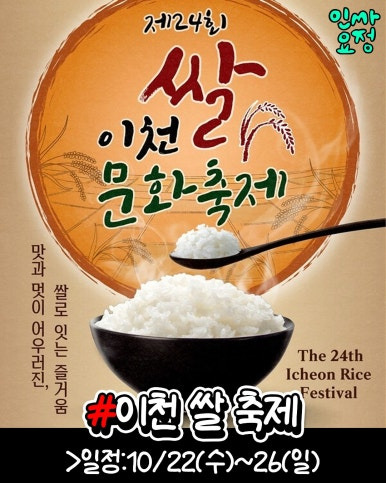 - 이천 쌀문화축제 : 대한민국 대표 쌀의 고장 이천에서 체험·시식·공연이 함께하는 농촌형 축제