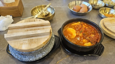 순두부찌개 국물이 정말 얼큰하고 칼칼해서 몸이 확 풀리는 느낌이었어요.