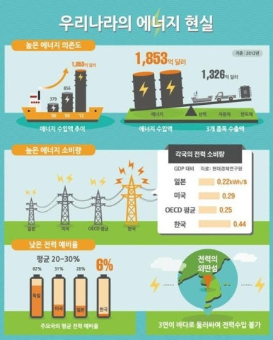 - 한국은 전력 생산의 상당 부분을 수입 연료에 의존