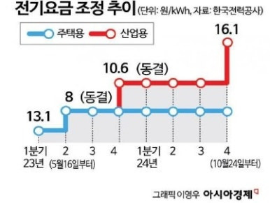 산업용이 가정용보다 거의 두 배 가까운 상승률을 보였습니다.