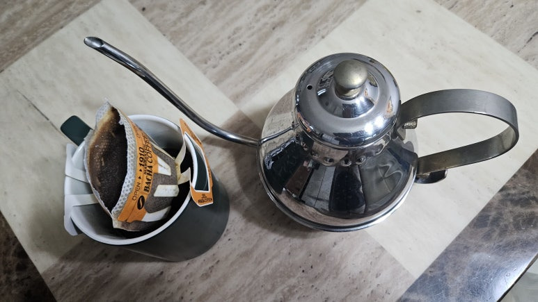✔ 드립용 포트나 주전자에 뜨거운 물을 담아