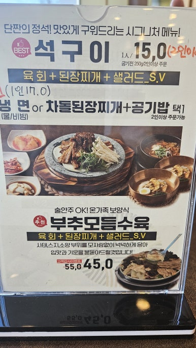 - 갈비찜 / 부추모듬수육(육회 + 된장찌개 + 샐러드 _ 셀프바)